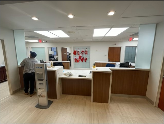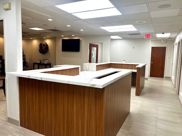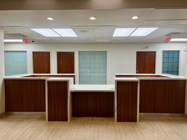 This renovation was envisioned to enhance both the functionality and appearance of the reception area, creating a more efficient workspace for staff while improving the overall experience for patients and visitors. By opening the space and reconfiguring key elements within the waiting and reception areas, the design supported better visibility, circulation, and day-to-day operations. The upgrades also prioritized accessibility and code compliance, ensuring the renovated suite provided a more inclusive, modern, and user-friendly entry point within the facility.