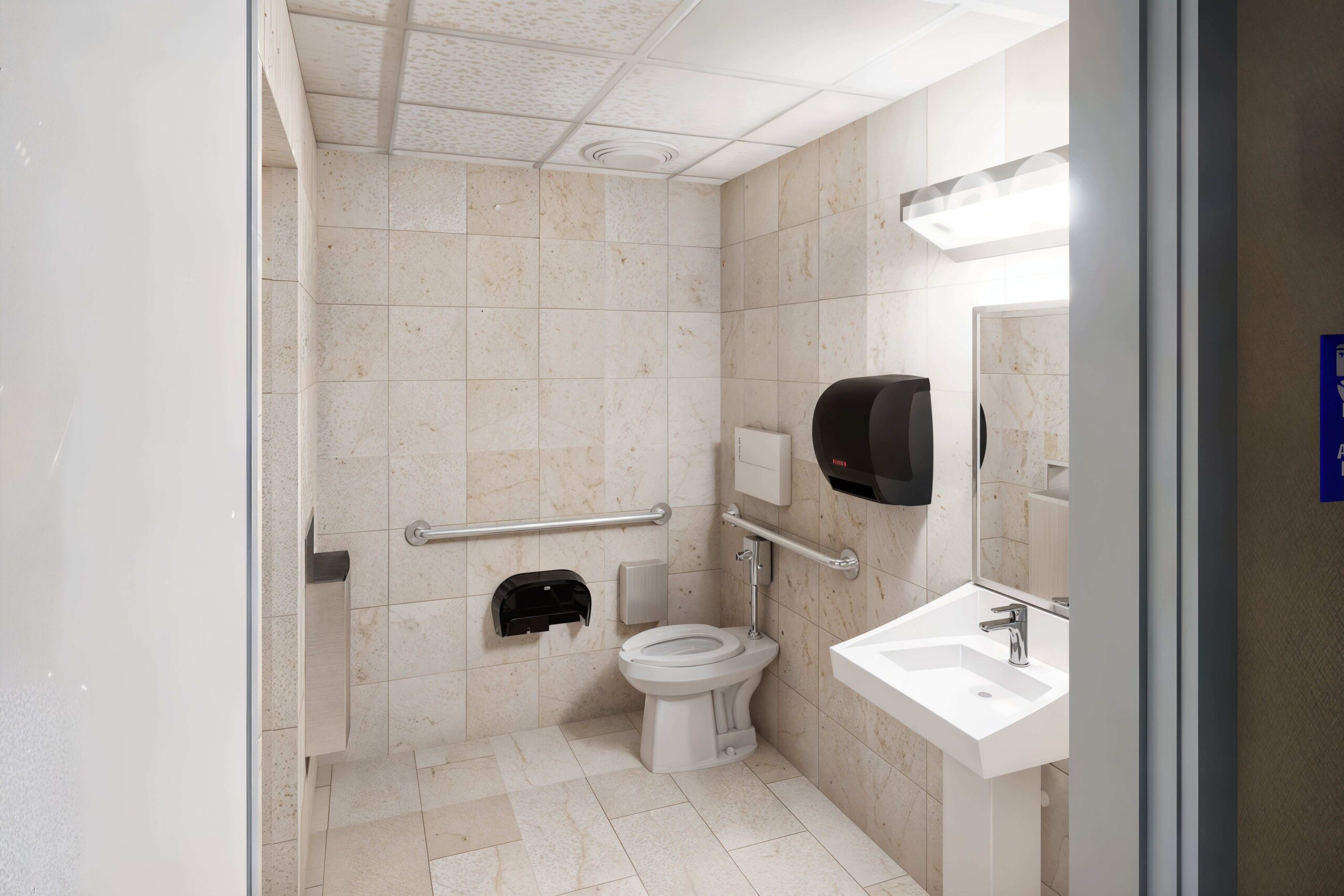 The interior renovation scope included upgrading the existing restrooms and offices, while introducing a new break area, a conference room, and an additional office—spaces designed to better accommodate collaboration, day-to-day operations, and employee wellness.