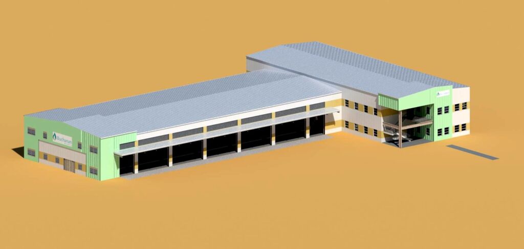 Set on a sprawling 40-acre site in Buchanan, Liberia, the Buchanan Renewables (BR) Maintenance and Truck Facility was designed and constructed to support the demanding needs of a large fleet of 18-wheeler trucks and heavy-duty equipment. This expansive industrial complex includes over 60,000 square feet of enclosed structures and integrates critical support systems to ensure full operational capacity on site.