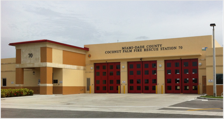 Coconut Palm Fire Station 70 is a single-story fire rescue facility encompassing approximately 11,939 square feet of advanced public safety infrastructure. Designed to meet LEED Silver Certification standards, the station reflects Miami-Dade Fire Rescue’s commitment to energy efficiency, modern construction, and resilient service delivery.