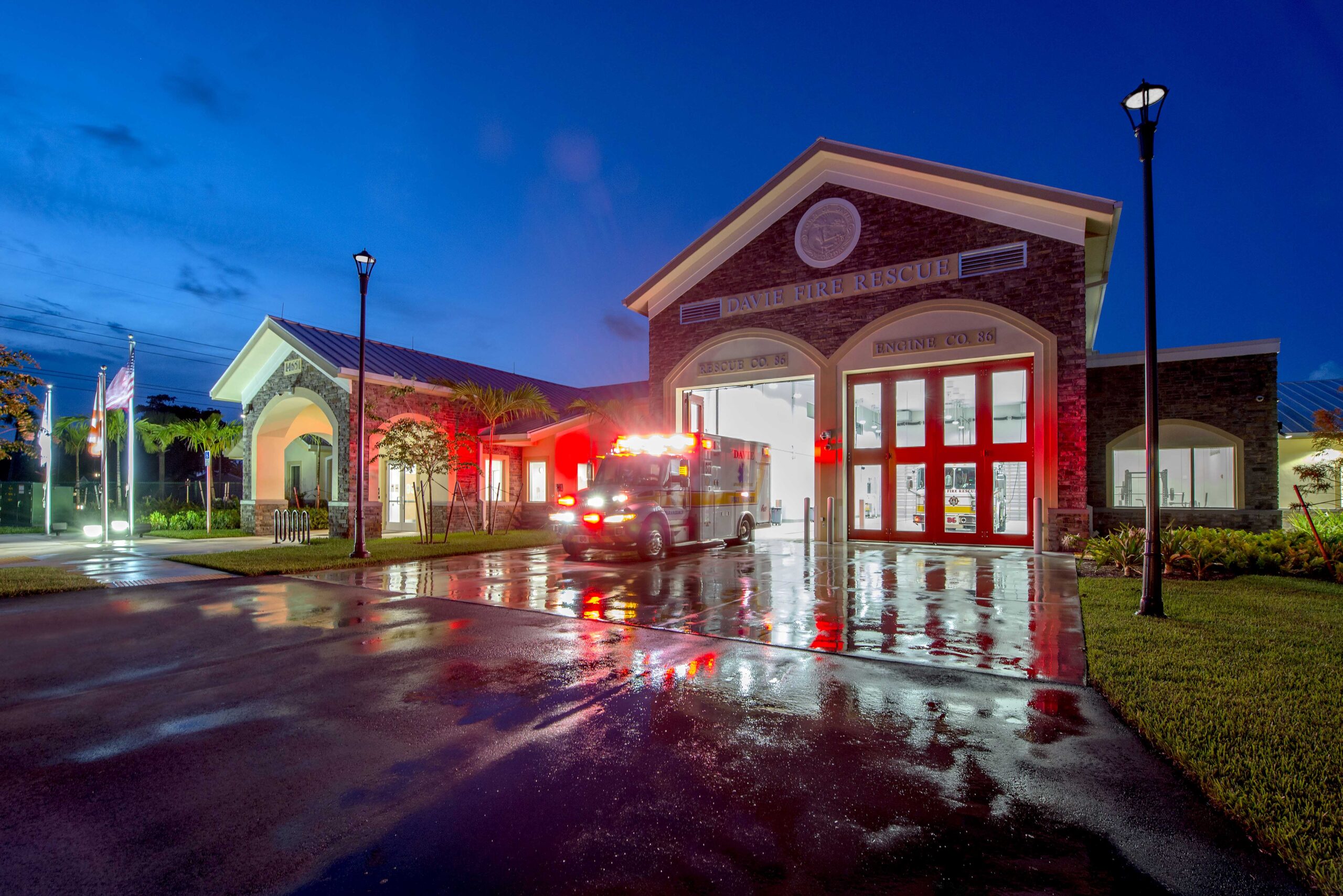This forward-thinking complex demonstrates how municipalities can integrate essential services with public use facilities—strengthening local infrastructure while fostering community connectivity. With its sustainable design, responsive layout, and civic-minded footprint, Davie Fire Station 86 is a model of 21st-century public safety architecture.