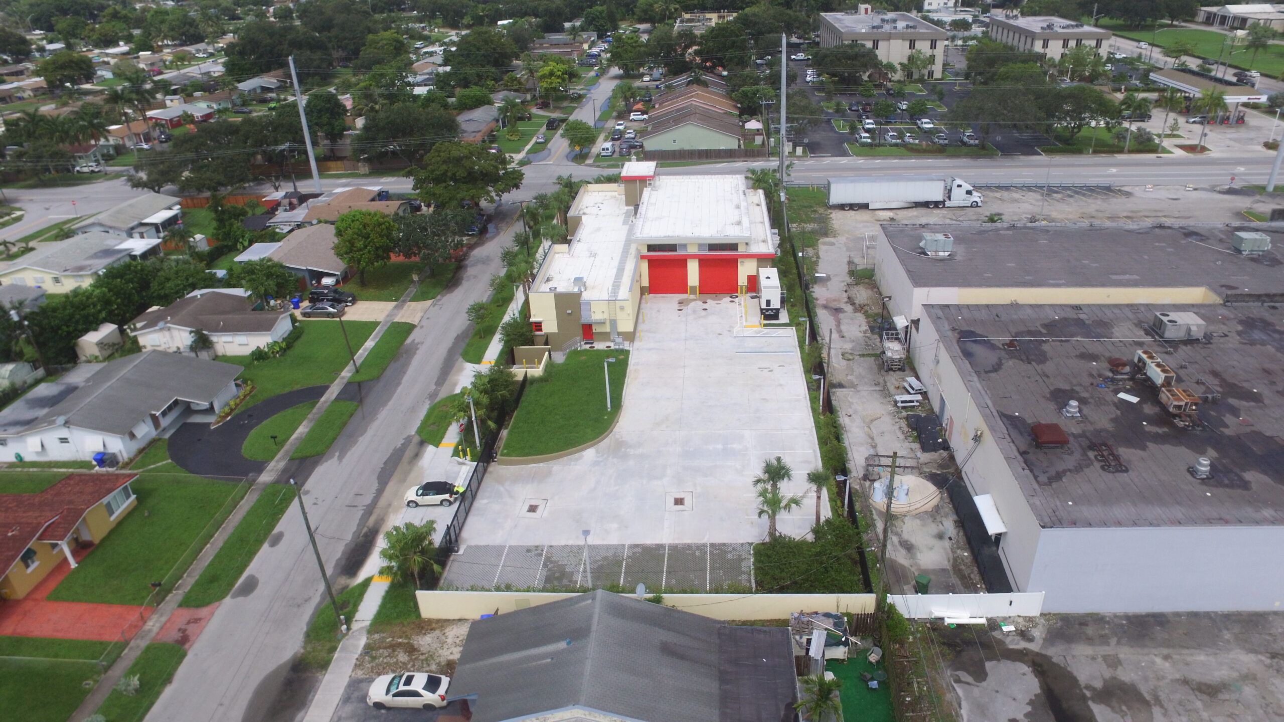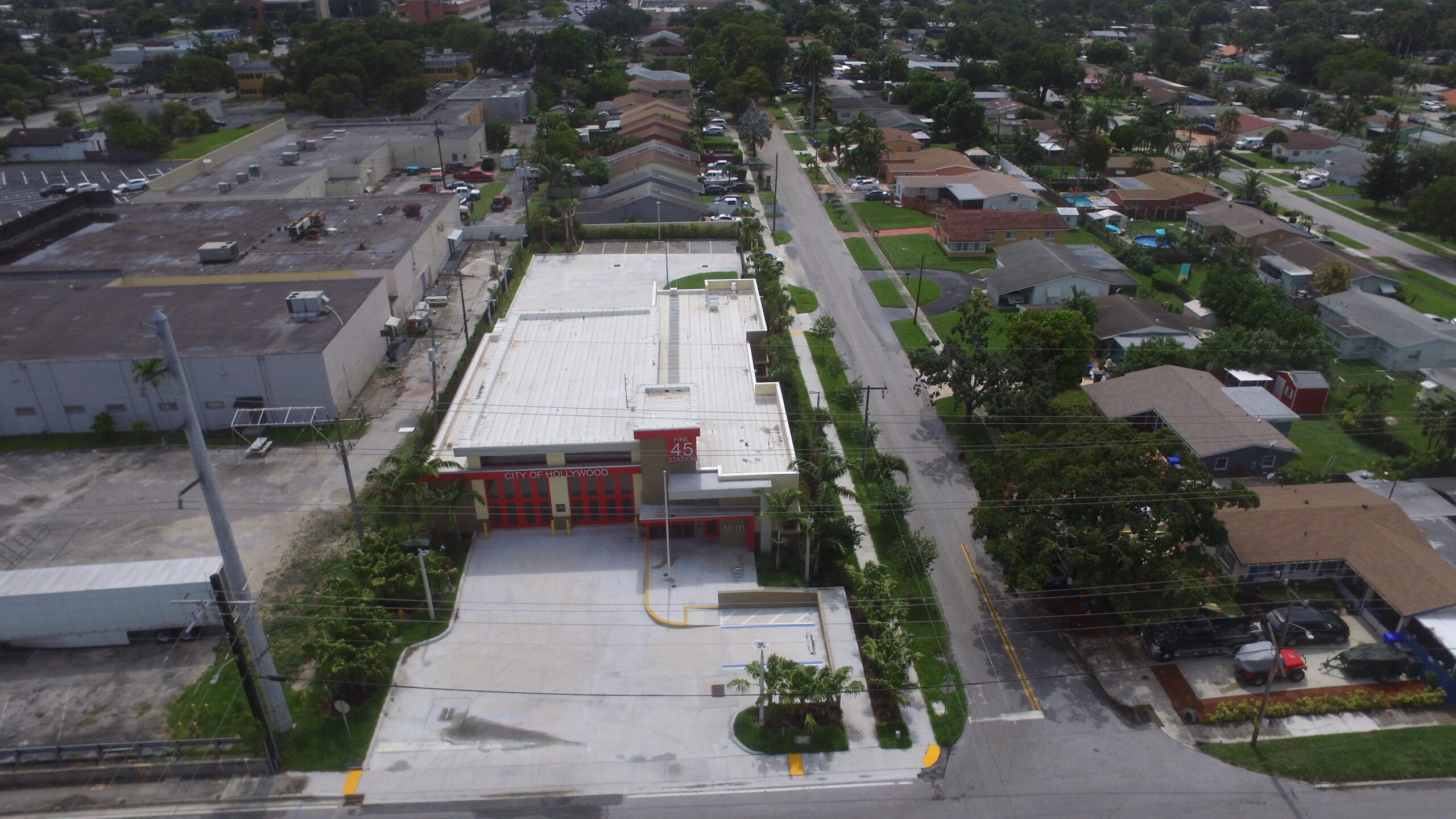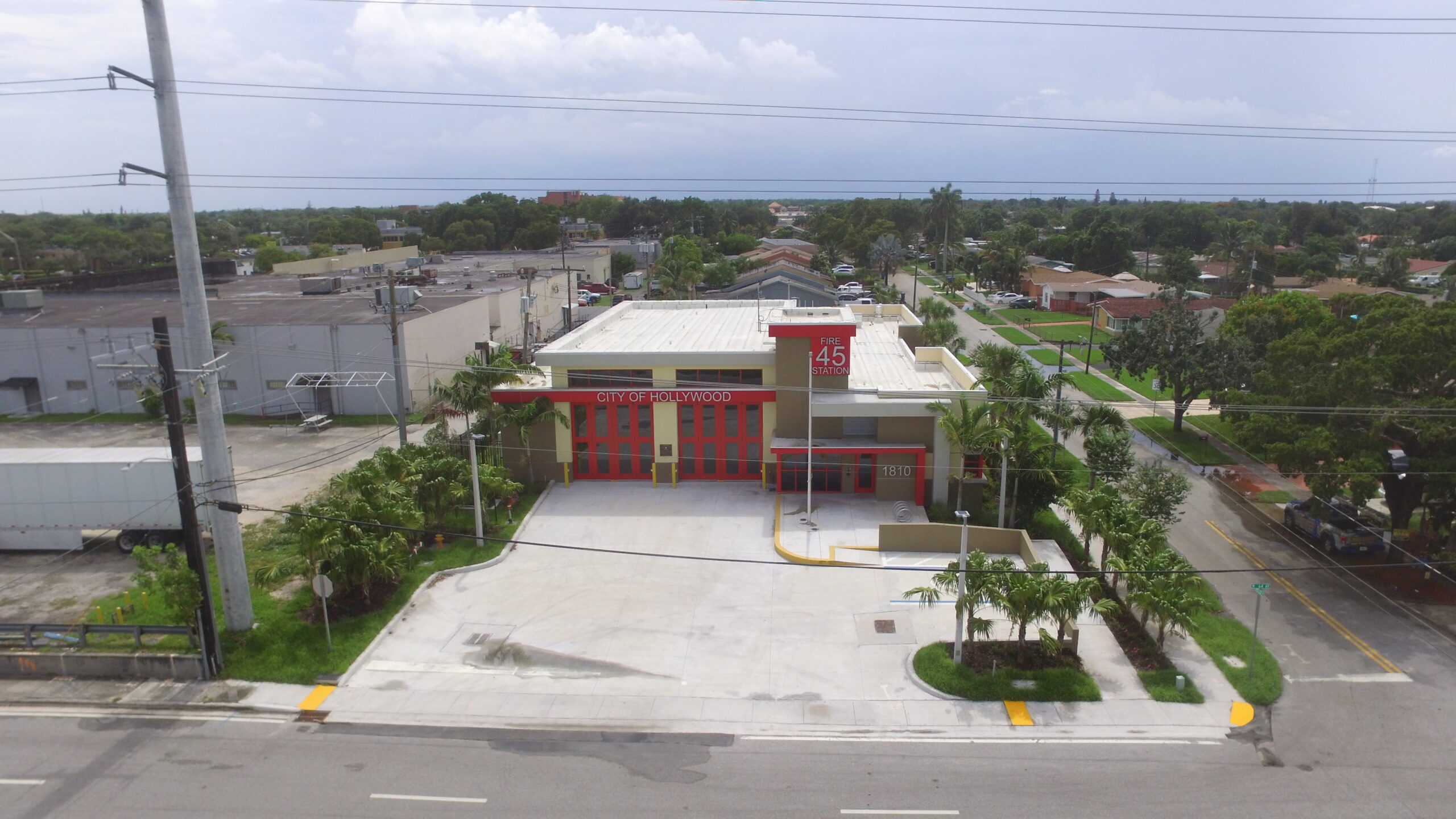 This project involves the demolition of the existing Fire Station and Garage Building located at 1810 N 64th Avenue in Hollywood, Florida, followed by the construction of a new 7,224-square-foot LEED Silver-certified fire station. The new one-story facility features two apparatus drive-through bays, nine bunk rooms, a day room, kitchen, exercise room, watch room, offices, bunker gear storage, laundry room, general storage areas, and other support spaces.