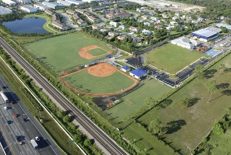 This multi-phase project began with extensive site clearance and preparation, involving the excavation and hauling of 65,000 cubic yards of fill. Site utilities were installed, including water, sewer with a lift station, drainage systems, and two retention ponds. The parking lot was designed with 67 spaces, including four reserved for handicap accessibility. The athletic fields were constructed to include soccer fields, baseball, and softball fields, all equipped with goals, bleachers, stands, and dugouts to fully accommodate sports activities.