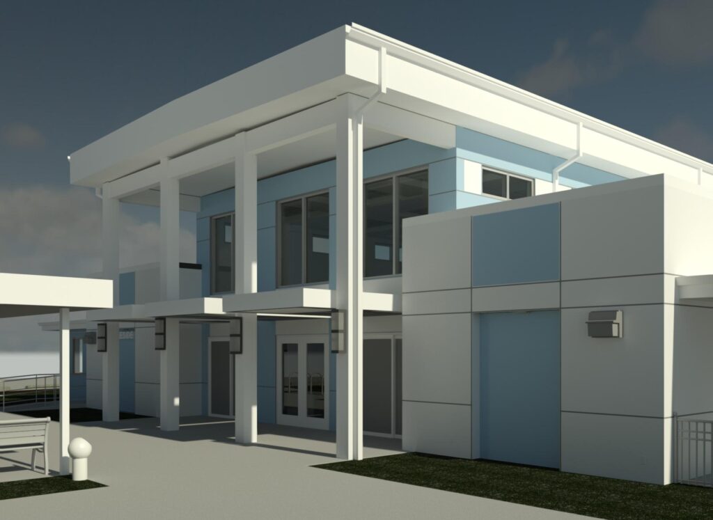 The renovation of this 1-story Clubhouse Building is designed to enhance the aesthetics for community use. The central portion of the building will be demolished to raise the roof over the main multipurpose room, creating a more spacious, open atmosphere with high ceilings and new upper windows that bring in abundant natural light. The redesigned multipurpose room will serve as a versatile venue for large community events and educational classes, with floor-to-ceiling glass doors offering sweeping views of the surrounding lake. Throughout the building, all finishes—including lighting, flooring, and walls—will be updated, and new impact-resistant windows and doors will be installed for improved safety and energy efficiency.