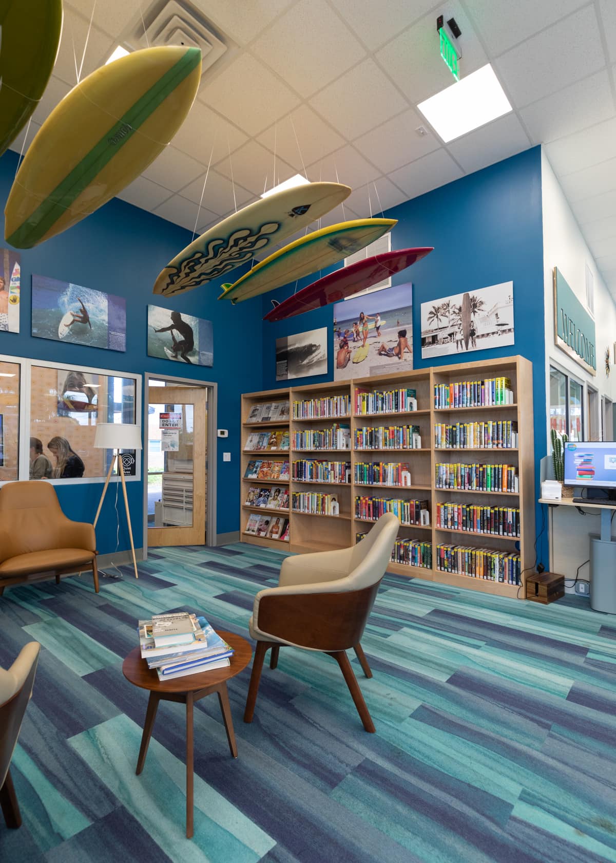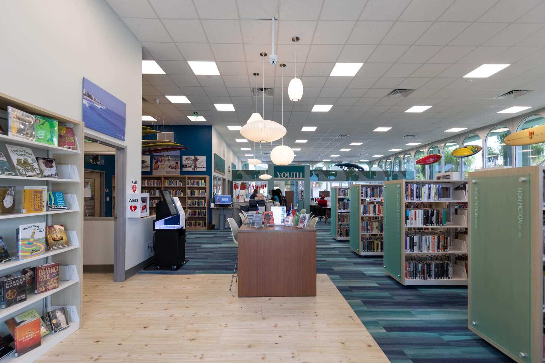 The recent renovation of the Lantana Public Library reflects a forward-looking investment in both community infrastructure and user experience. Focused on the main floor, the reconfigured layout introduces a modern and welcoming environment that includes a central stacks area, an adult reading room, a dedicated children’s section, and a thoughtfully designed teen area—each supporting diverse patron needs across all age groups.