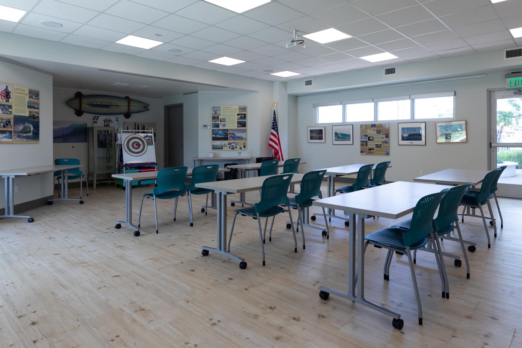 One of the more creative transformations involved enclosing the former drive-up teller area under the existing roof to create a new, flexible community room—offering an additional venue for events, workshops, and civic gatherings. This space also received a new roof, ensuring its longevity.