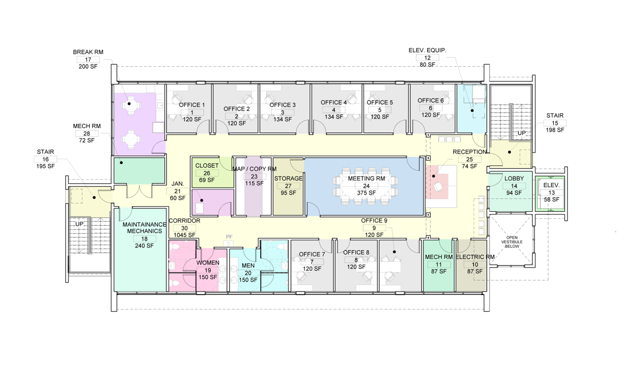 The conceptual design for the Marathon Key Service Building resulted in a two-story, 5,500-square-foot structure that was thoughtfully crafted to serve both operational needs and community context. The facility was designed to accommodate nine office spaces, daily-use amenities, equipment areas, and storage, all arranged to maximize efficiency while maintaining an approachable atmosphere for staff and visitors.