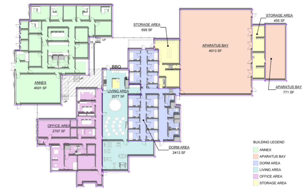 The station’s updated layout includes dedicated areas for fire and EMS operations, an apparatus bay, and improved accommodations for daily living, exercise, and training activities. These enhancements allow for streamlined workflows and improved team coordination during high-demand situations.