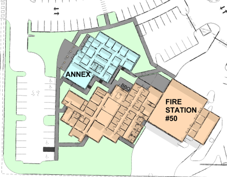 To further address the city’s operational needs, a new annex facility was introduced adjacent to the main station. This addition houses a kitchen, break room, locker rooms, training classrooms, and administrative offices, offering expanded space for instruction, recovery, and planning.