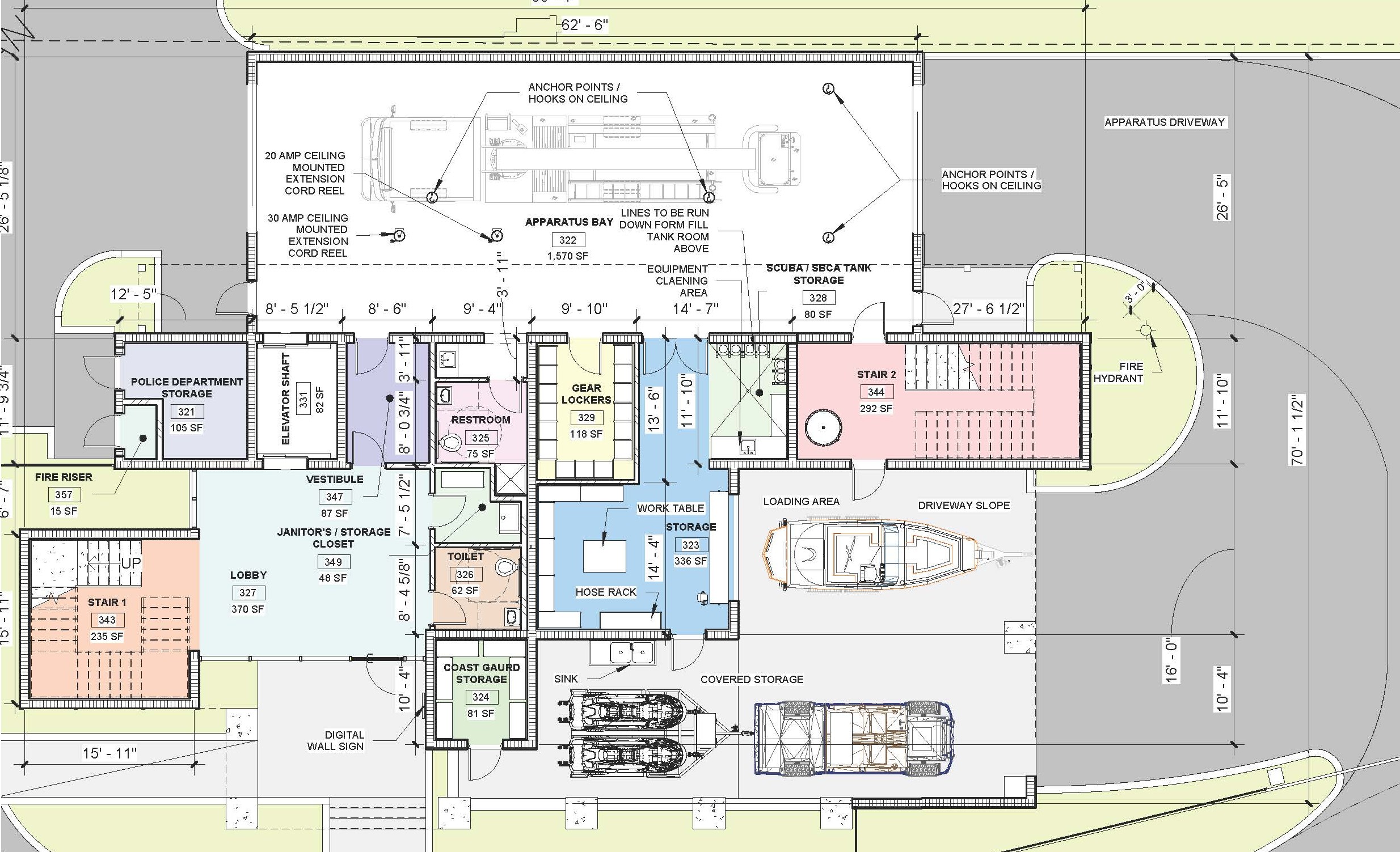 This project involves the demolition of the existing marine facility at Oyer Park and the design of a new three-story, approximately 14,803-square-foot Fire Station and Marine Response Facility for the City of Boynton Beach. The new facility is designed to enhance emergency response capabilities while addressing the site’s floodplain conditions by locating all habitable spaces and essential mechanical systems above the FEMA base flood elevation. The ground floor is dedicated primarily to apparatus bays and equipment storage, while the upper levels provide operational, administrative, and living spaces to support fire rescue and marine response personnel.