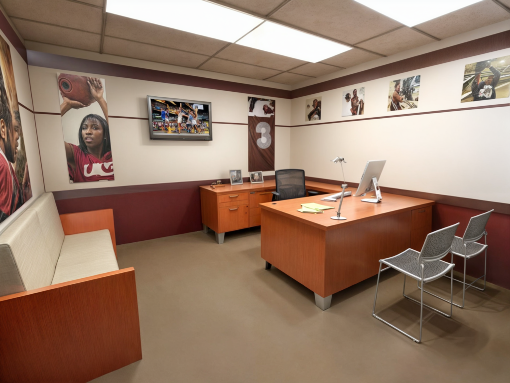 The renovation was driven by the goal of creating a college-inspired environment, offering young athletes an elevated and professional space that mirrors the feel of high-level athletic programs. High-quality finishes, smart layout enhancements, and modern amenities were introduced to foster a space where players can train, prepare, and build team identity.