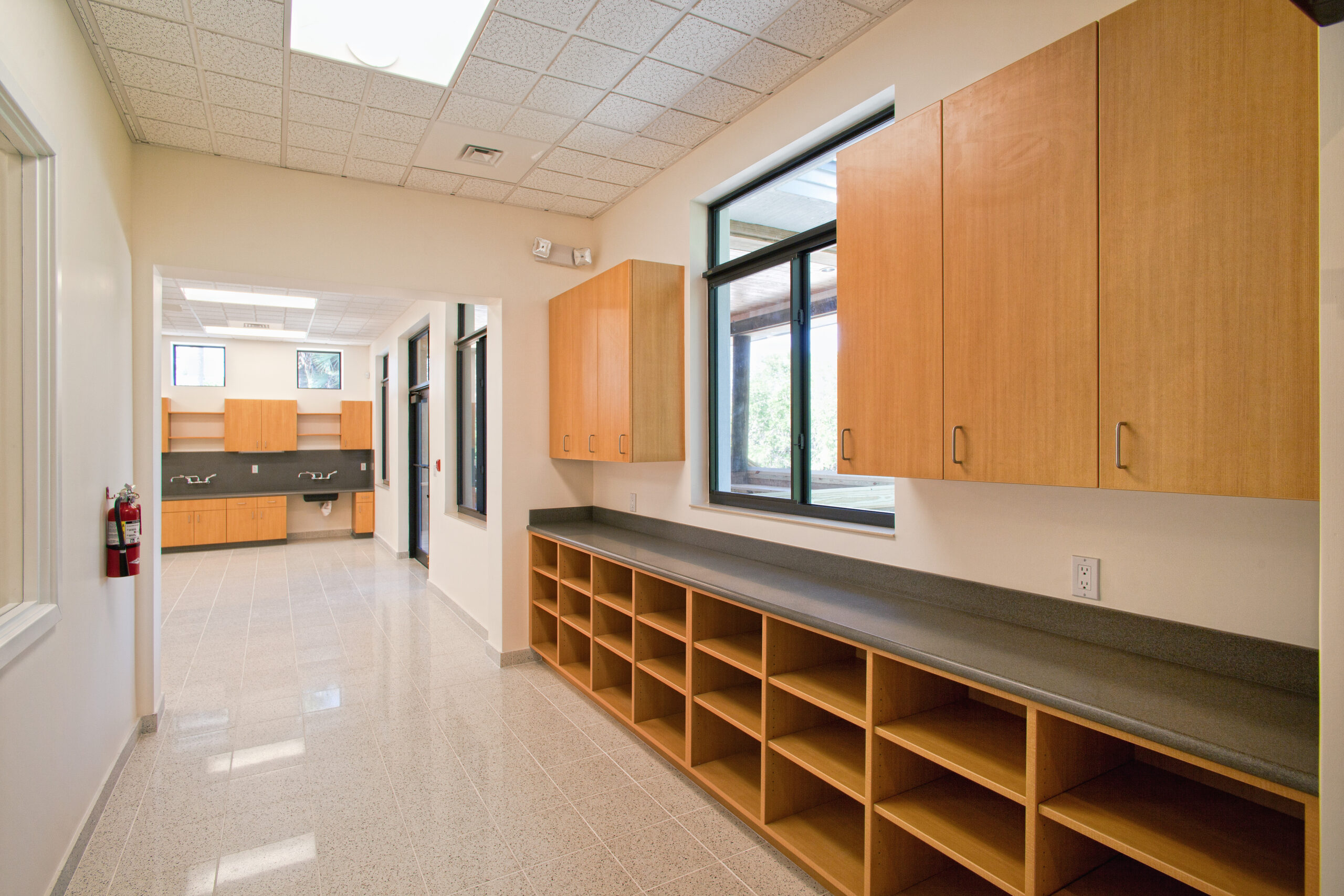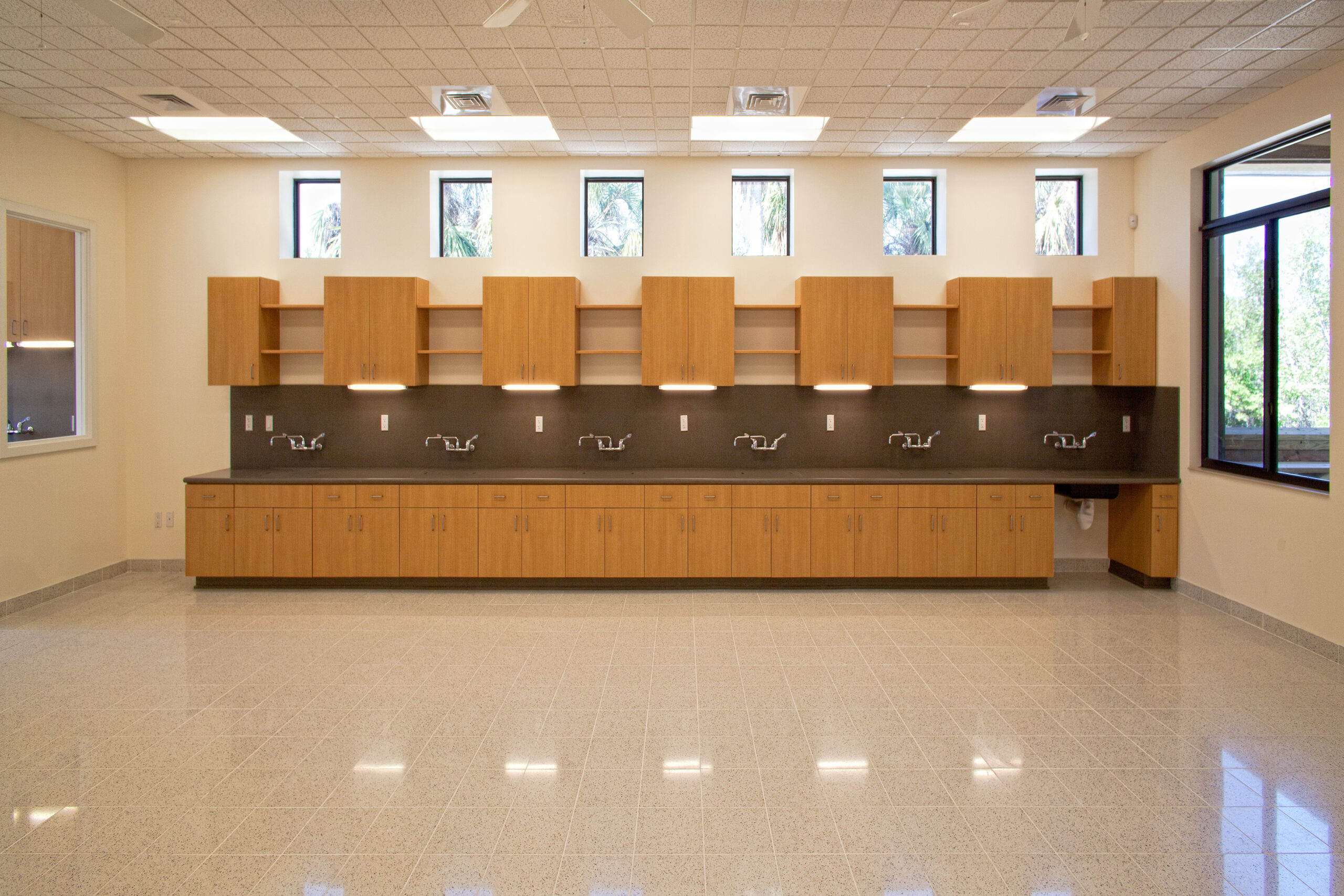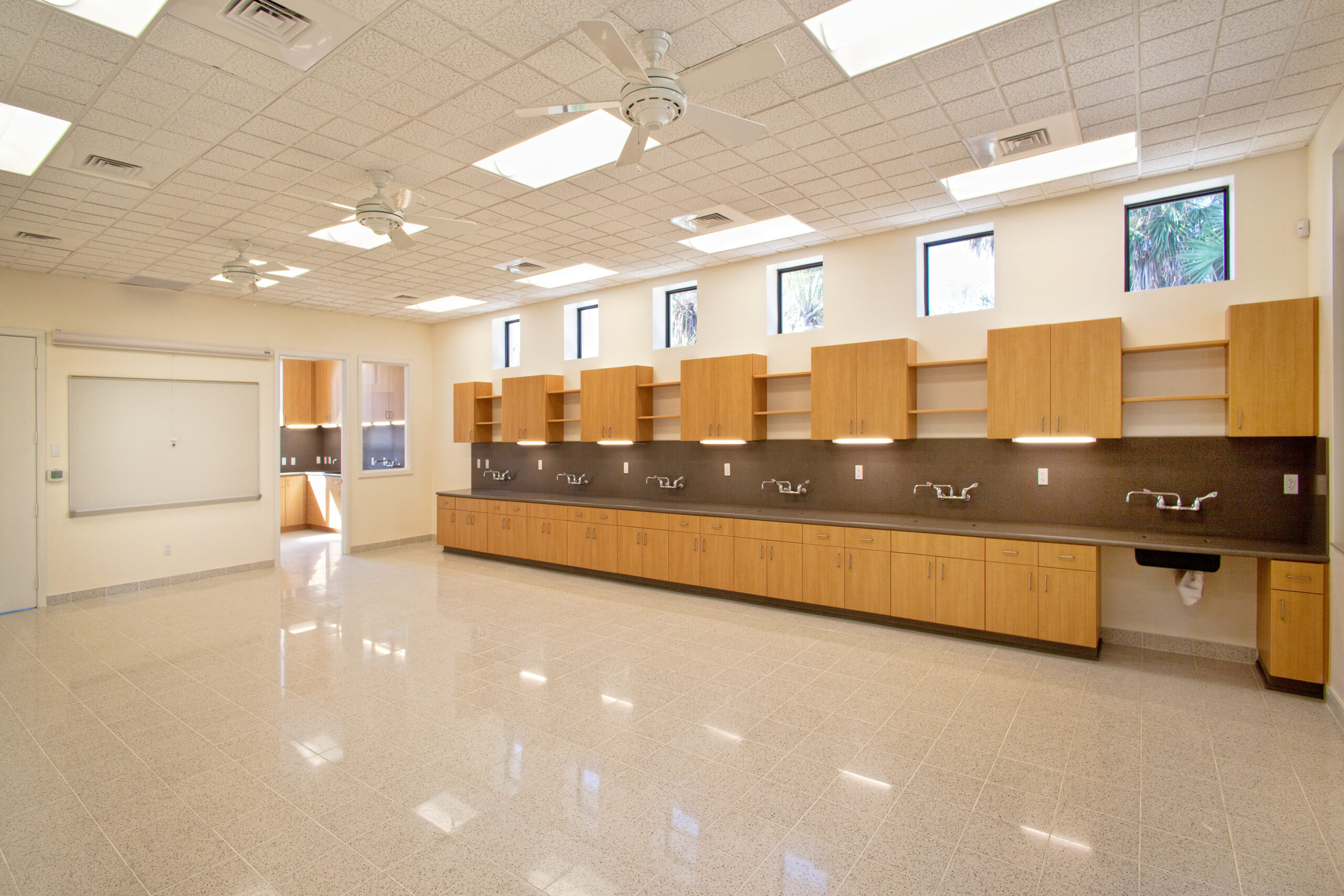 At the heart of the Center is a flexible classroom space that can accommodate up to 40 students and instructors, complete with 8–10 modular tables, 60 chairs, and ample storage. The space is equipped for immersive, hands-on learning, featuring wet labs, microscopes, and computer workstations that encourage students and visitors to engage with Florida’s unique ecosystems in a meaningful way.