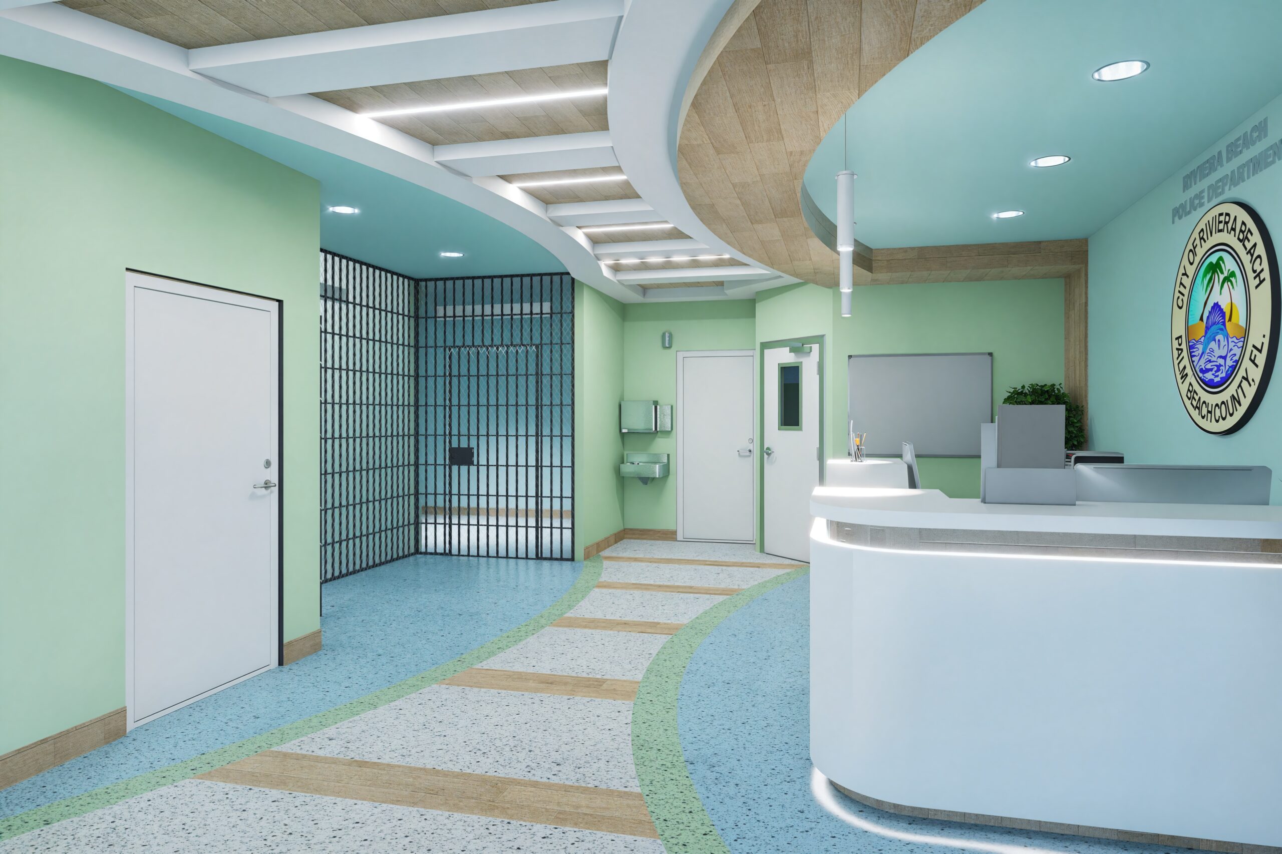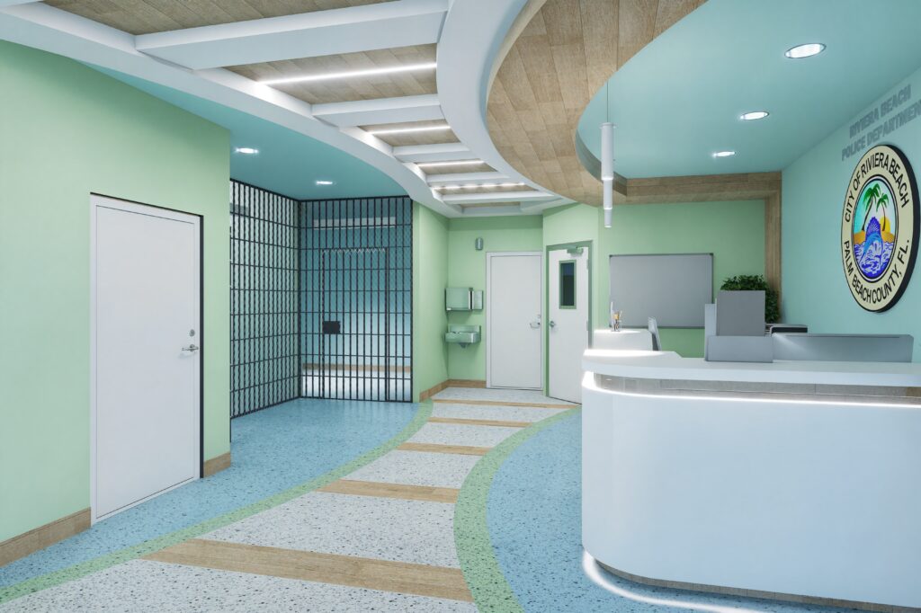 The renovation of the booking and holding cell area at the Riviera Beach Police Department focused on modernizing and upgrading a critical section of the facility. Designed to enhance safety, security, and workflow, the project included the construction of two secure holding cells, a booking and processing area, a waiting room, restroom, and dedicated storage.