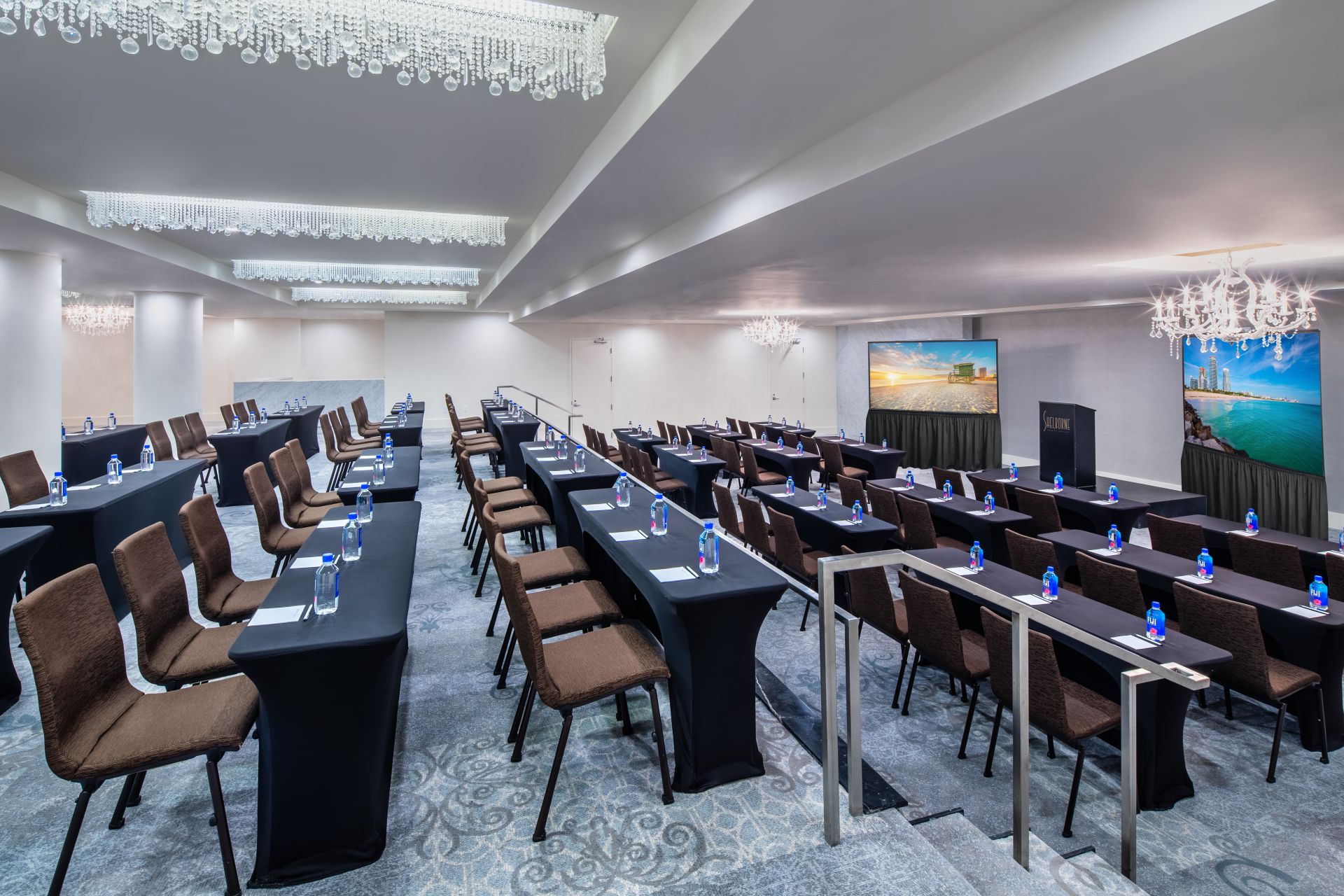 The Shelborne South Beach Hotel Ballroom has undergone a stunning transformation, blending modern sophistication with resilient design following damage sustained during Hurricane Irma. The 4,388-square-foot renovation revitalized this iconic Miami Beach venue, positioning it once again as a top-tier destination for high-end events, galas, and social gatherings.