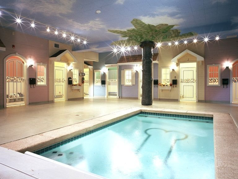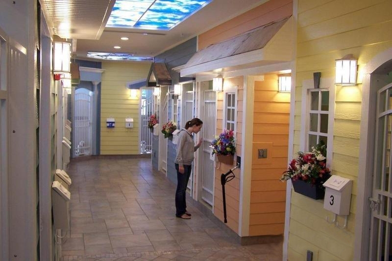 Barkers Hotel is a unique Design/Build project that reimagines luxury boarding for pets in a Key West-inspired setting. The interior mimics a quaint streetscape, with each pet suite designed to resemble a distinct house front—complete with mailboxes for records, custom bedding, private patios, and in-room televisions to create a home-like atmosphere.