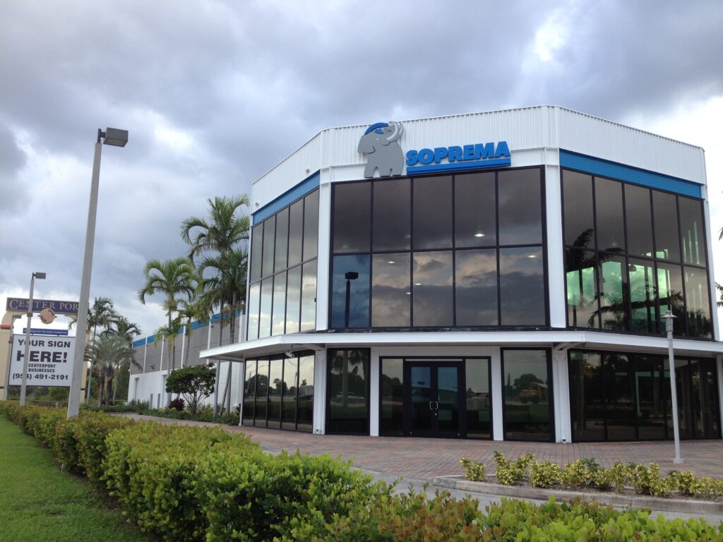 Once a Harley-Davidson dealership, the building now serves as Soprema’s Florida Regional Office—an impressive example of adaptive reuse that transformed a retail showroom into a modern office and industrial training facility in Pompano Beach.