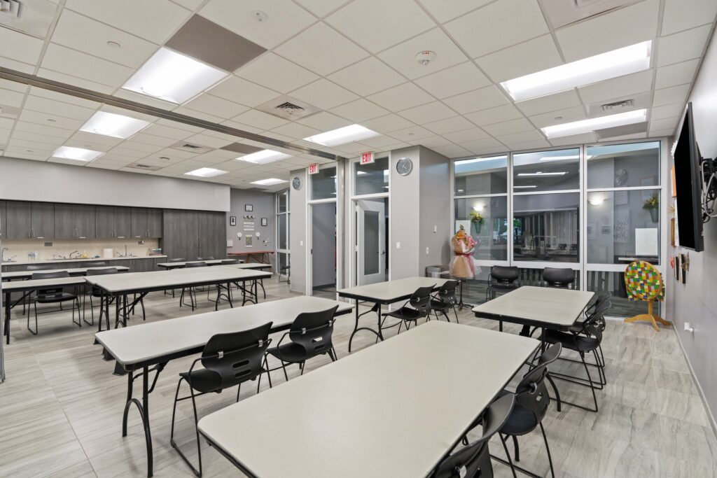 A key highlight of the project is a newly constructed 2,356-square-foot addition, which introduces a state-of-the-art computer training room and a vibrant game room, supporting both digital literacy and social interaction. Complementing the interior improvements, the site has been enhanced with new parking areas, upgraded lighting, landscaping, irrigation, and a dedicated dumpster/storage building. Together, these upgrades ensure the center remains a welcoming, modern environment that promotes learning, wellness, and connection for Sunrise’s senior community.
