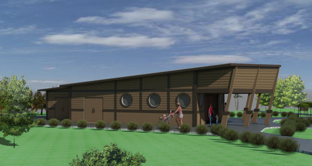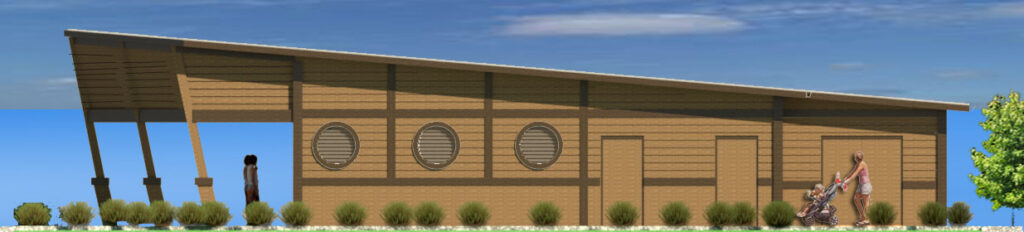 Waters Edge Park’s conceptual addition is a 1,576-square-foot building thoughtfully designed to support the park’s popular splash pad while enhancing the overall visitor experience. With design cues inspired by the park’s playful pirate theme, the building creates a welcoming presence through its covered entry and contemporary architecture.