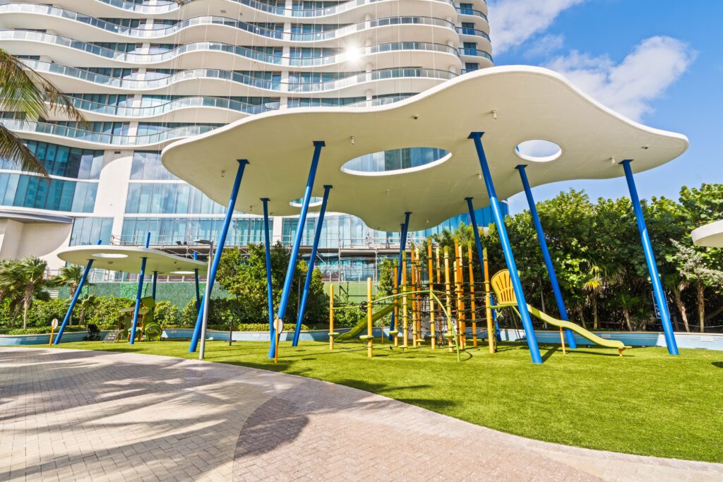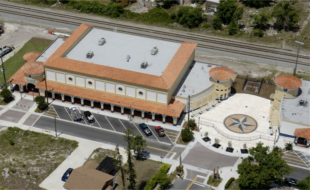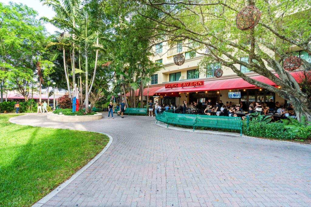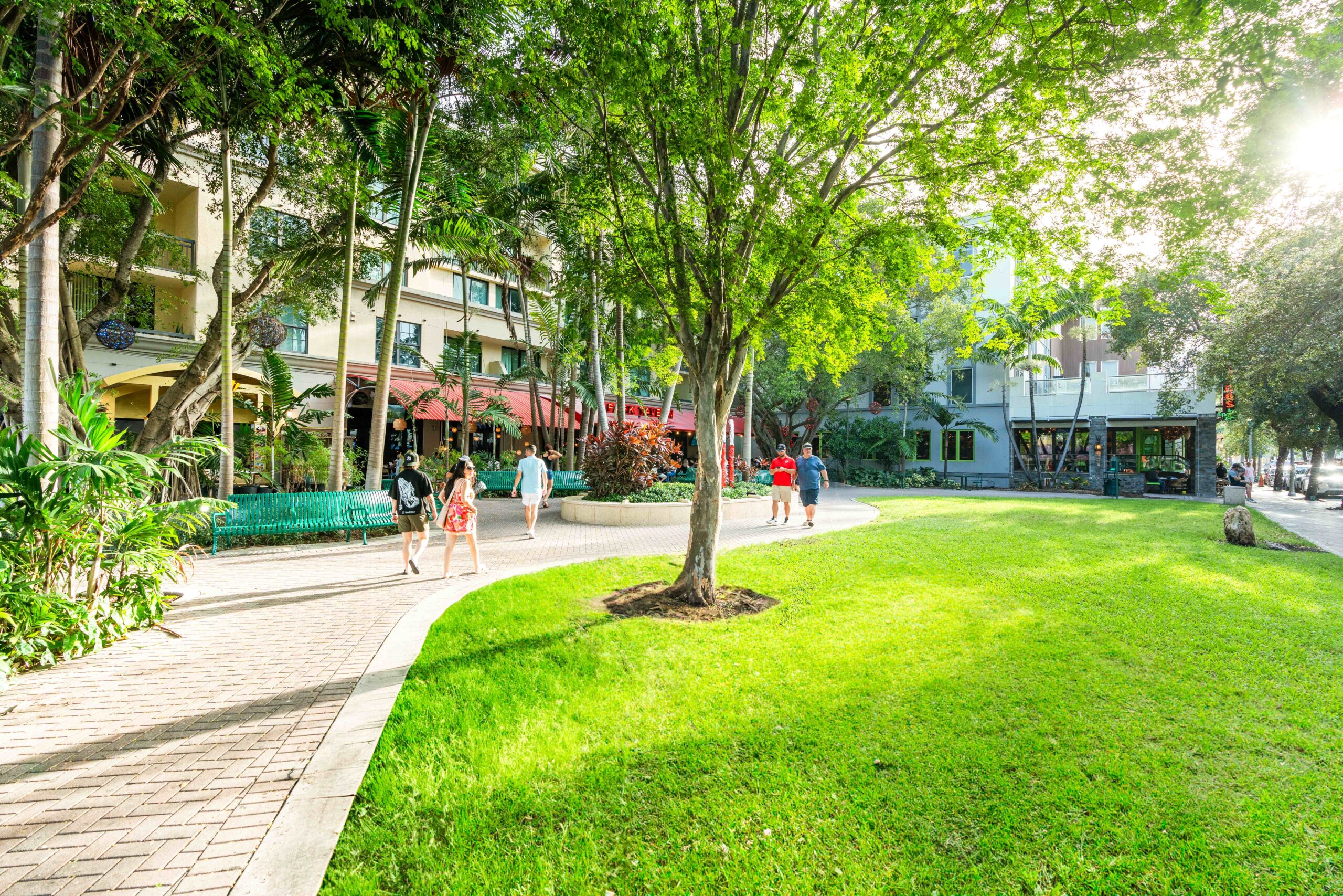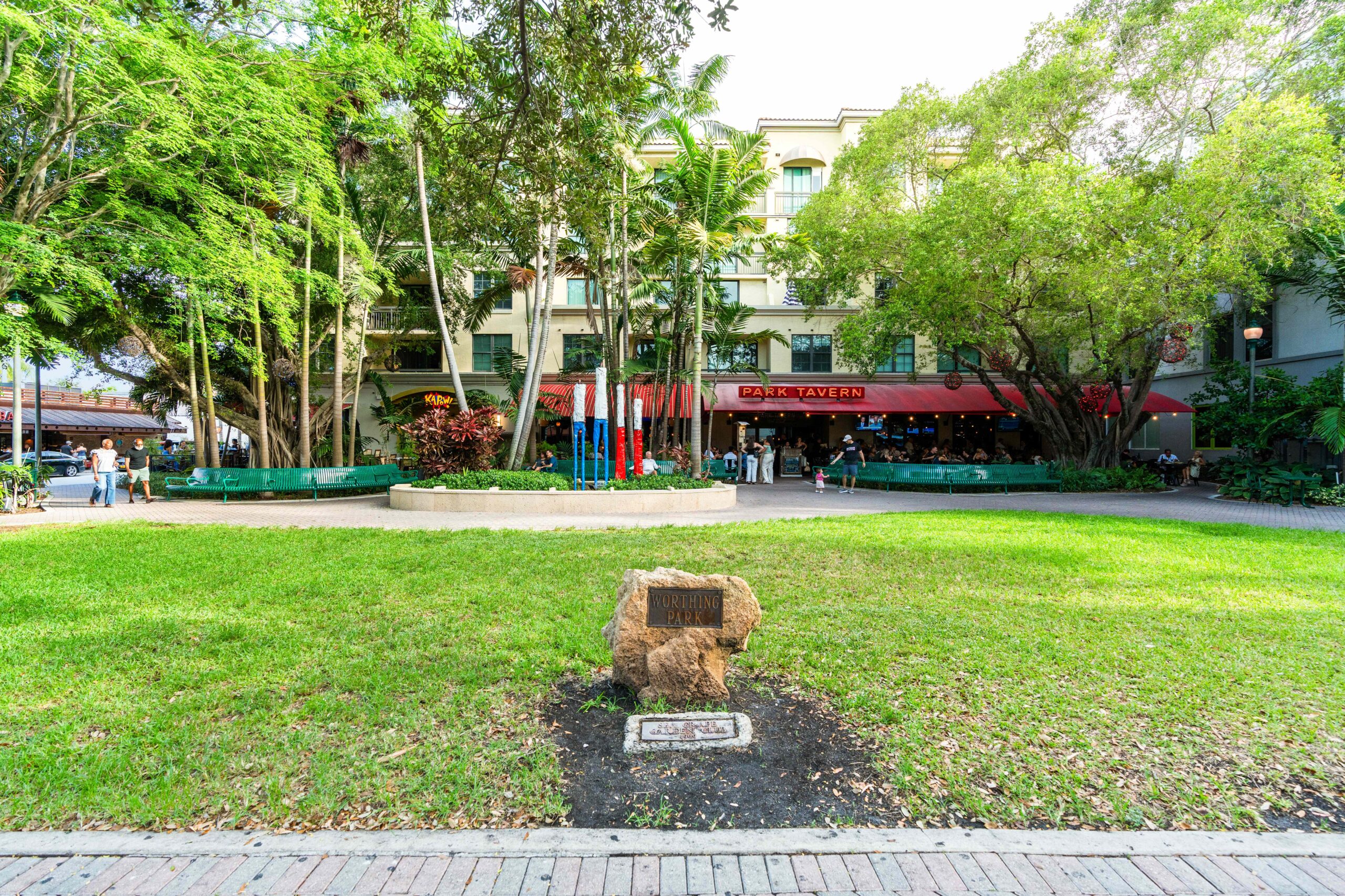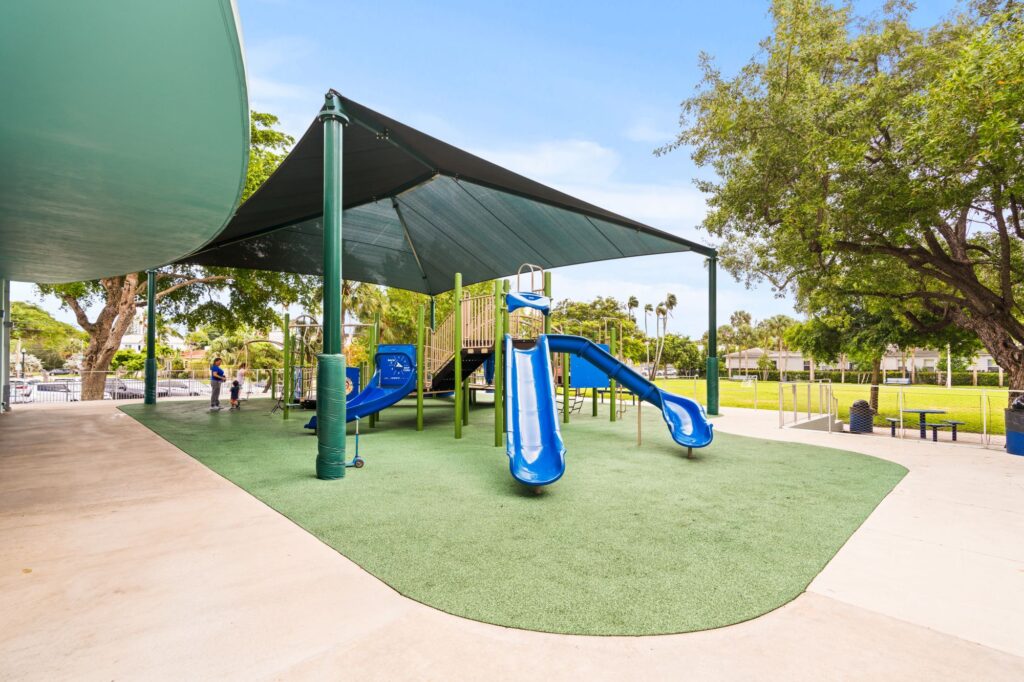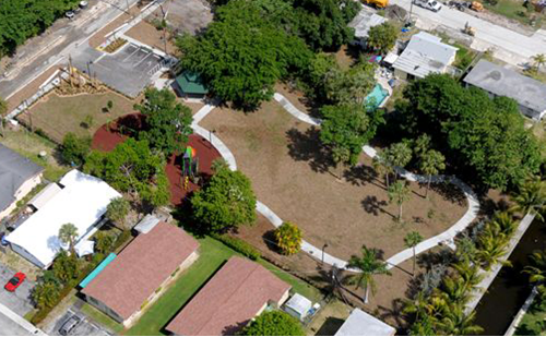 Complementing the improved pedestrian circulation, the park features durable Florida-native landscaping, including celebration sod, palm trees, and drought-tolerant shrubs, supported by an updated irrigation system. The addition of pedestrian-scale decorative lighting, public art, curved planter seat walls, and a suite of park furniture—such as benches, café tables, a drinking fountain, and bike racks—creates a welcoming and well-appointed civic space. Completed in just two months, the revitalization blends aesthetic charm with durable, community-centered design.