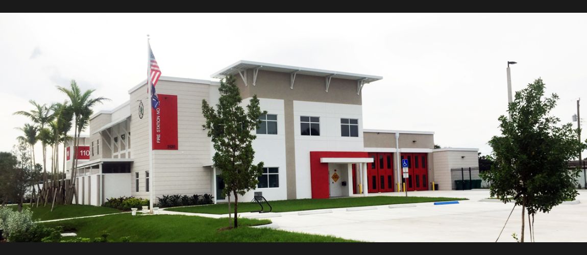 The design & construction of a new building facility for Fire Station No. 110. The facility is located at 3120 NW 12th Place, Lauderhill, FL 33351 over a lot area of approximately 61,012 SF. The building includes 3-double deep bays for fire & rescue trucks, the related rooms required to accommodate the living quarters for staff of 7, offices, storage rooms, police office, EOC area as well as related facilities such as, parking lot, interior roadways, a fuel station, emergency generator & connection to all public utilities.