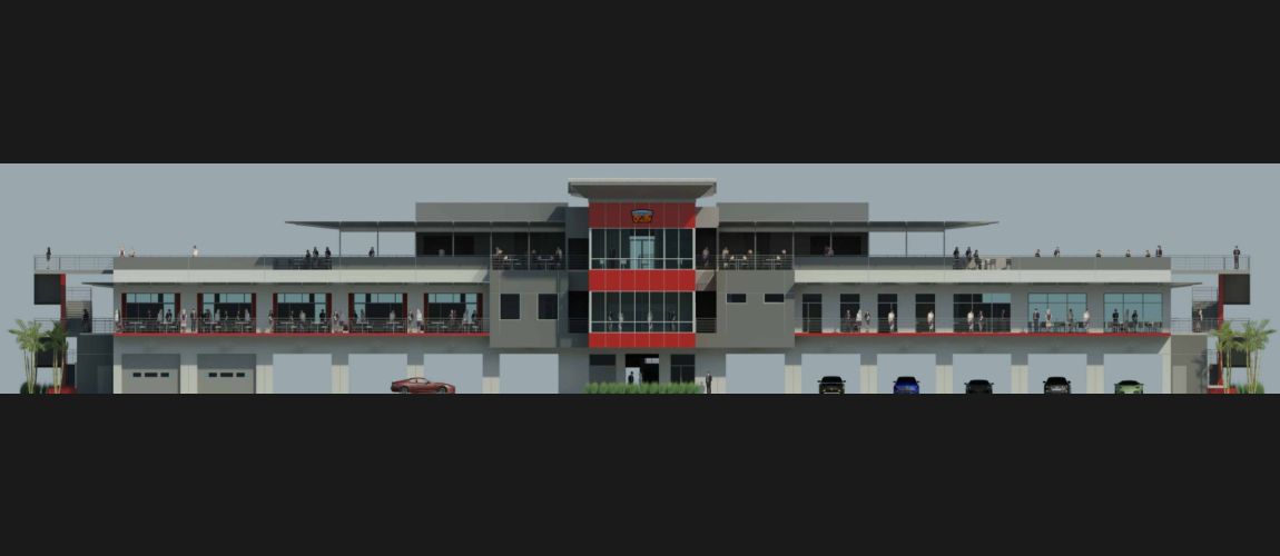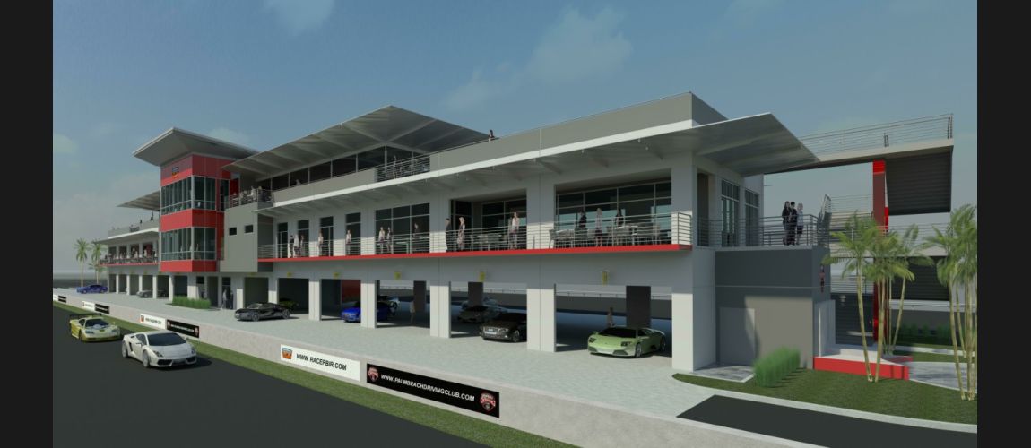 The PBIR Pit Suites/Clubhouse is a new multipurpose 3 story bldg. inside the PBIR racetrack facilities (Pit Lane area) . Pit Garages are on the first floor. On the second Level are the Private Suites/Flex Space, The Palm Beach Driving Club (private Club), Offices and Press Room. On the Upper Level there is an Observation Deck/Concession areas on both sides of the building and the Racetrack Control Room centrally located. The design of the Building is contemporary with some key elements and materials inspired by car racing.