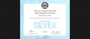 This building is United States Green Building Council LEED Silver Certified. The project consisted of the construction of two buildings on one site. One Administration building with a detached maintenance facility to support the Solid Waste Authority. The 5,600 SF Administration building houses 10 offices, a lobby, break room and training areas. There is also a 685 SF covered patio for the employees. LEED Silver was obtained through very efficient HVAC, Day lighting of all offices, each office has interior glass that allows natural light into circulation spaces. Occupancy sensors on all switches limit energy usage.