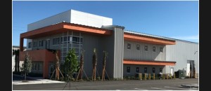 warehouse building (+/- 19,550 sq. ft.) and associated site work. The pre-engineer metal building reflects an Mid-Century Modern architectural style with a covered balcony, bold colors, large windows, custom-made perforated metal sign, and a mixture of industrial textures and materials; The lobby, a two-story space with monumental staircase leading to a balcony.